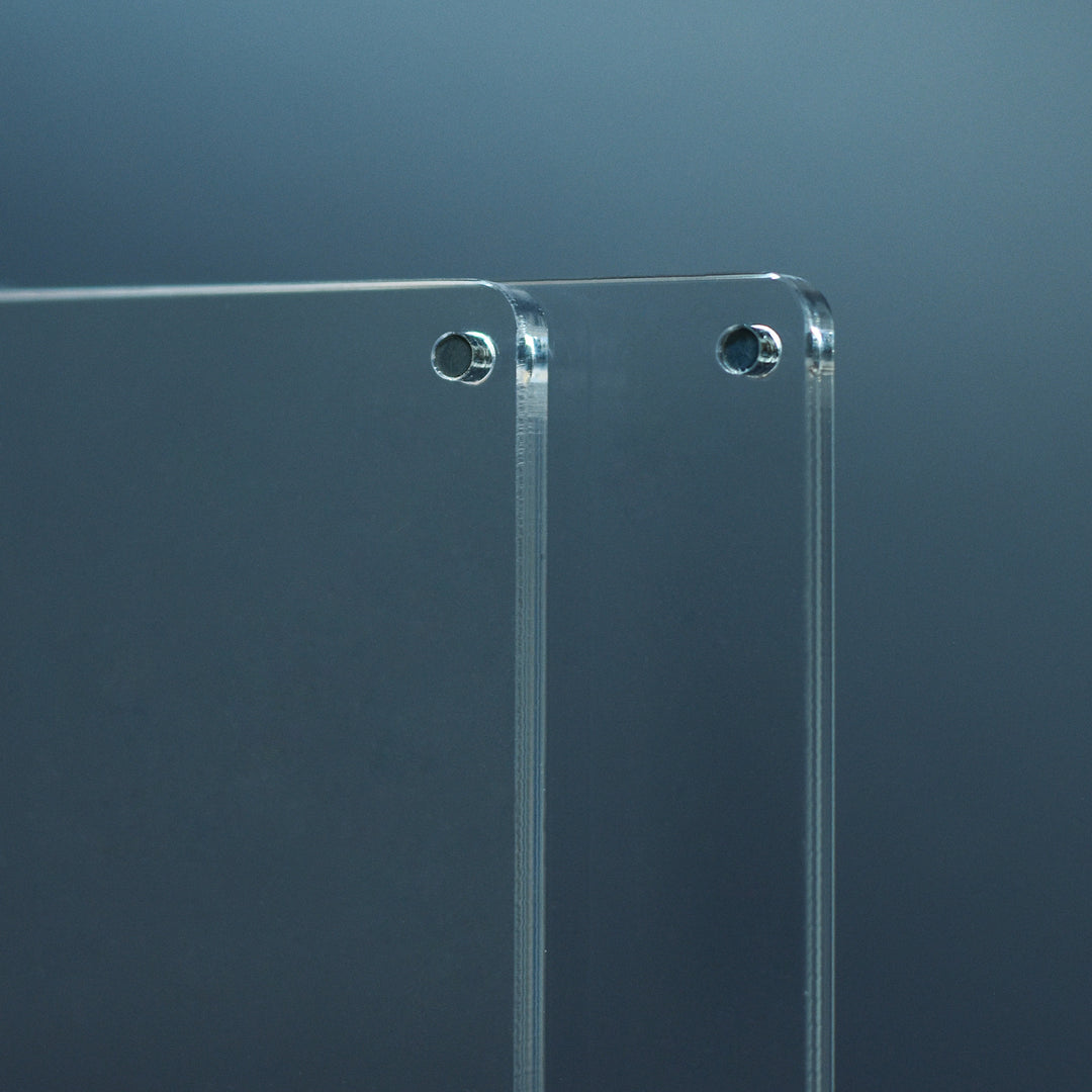 Dank unserer magnetischen Ausführung ist der Austausch des Inhalts so einfach wie nie zuvor. Die klare Acryl-Deckplatte kann problemlos vom Halter entfernt und wieder platziert werden. Die Magnete zentrieren den Deckel automatisch.