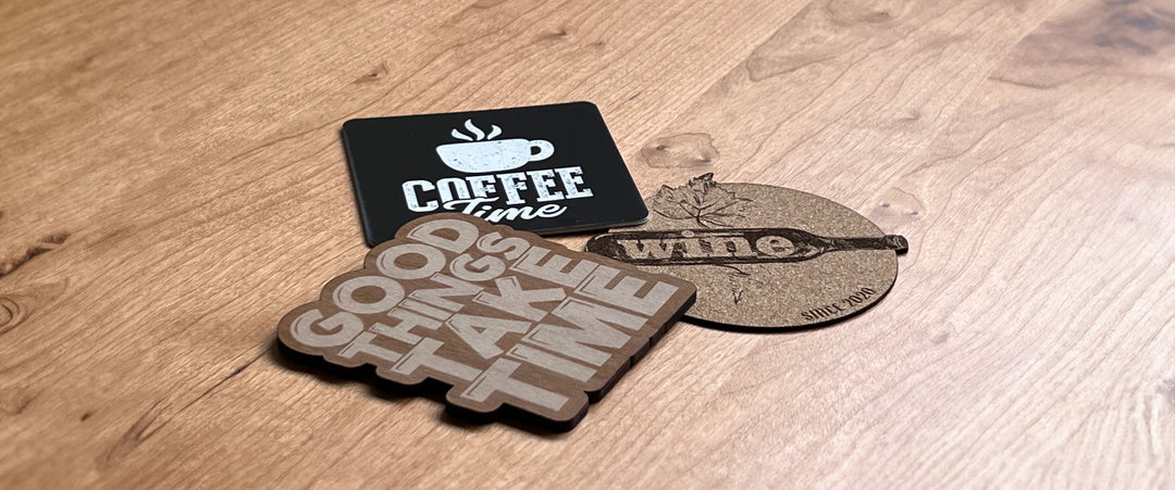 Unsere hochwertigen, robusten und langlebigen Getränkeuntersetzer können beispielsweise mit Ihrem Logo graviert werden. Sie sind in einer großen Materialauswahl erhältlich.
